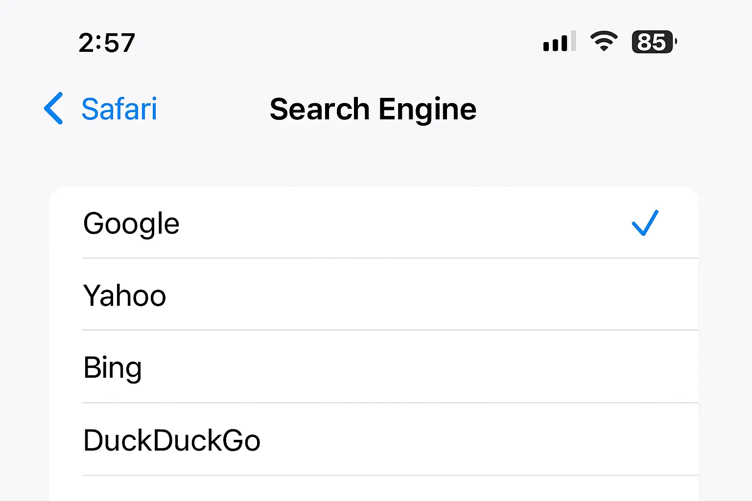 By the way, go to Settings, Safari, Search Engine and choose DuckDuckGo if you want to keep your searches private.